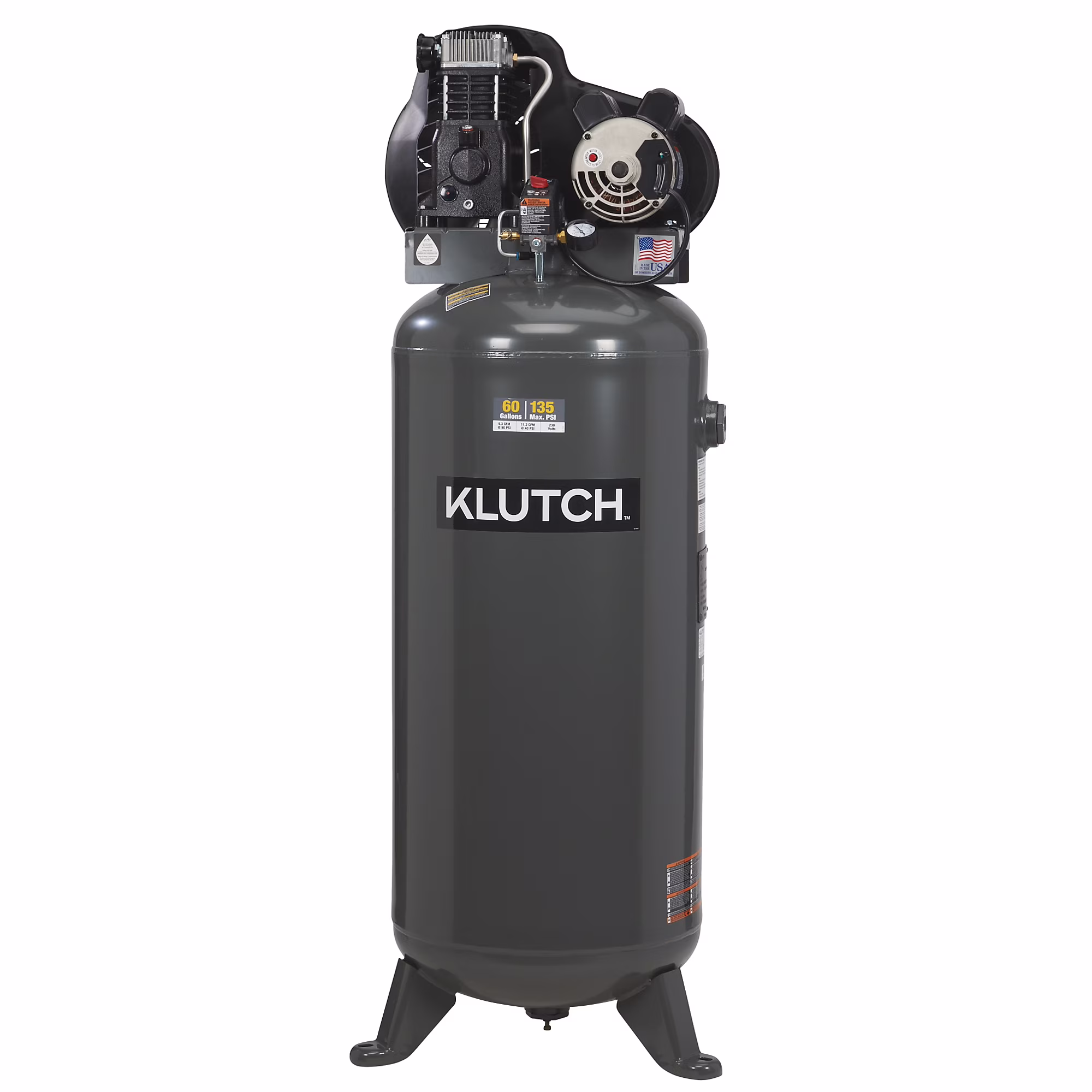 Klutch 60-Gallon Single-Stage Vertical Air Compressor, 3.7 HP, 230 Volts